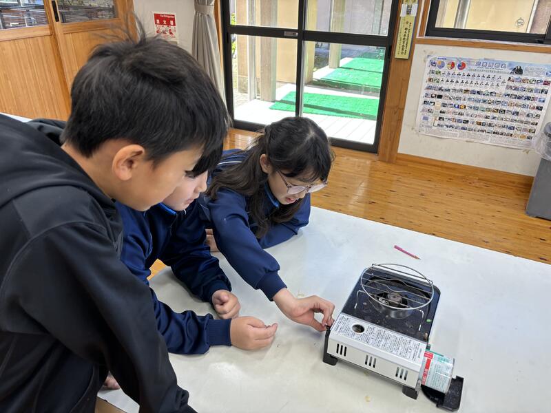 その後、金属を温め、元は通っていた輪っかに金属の塊が通るかどうか確かめました。とても生き生きと実験に取り組む姿が見られました。