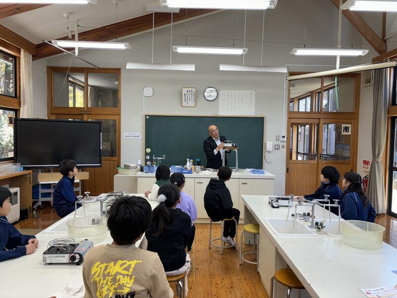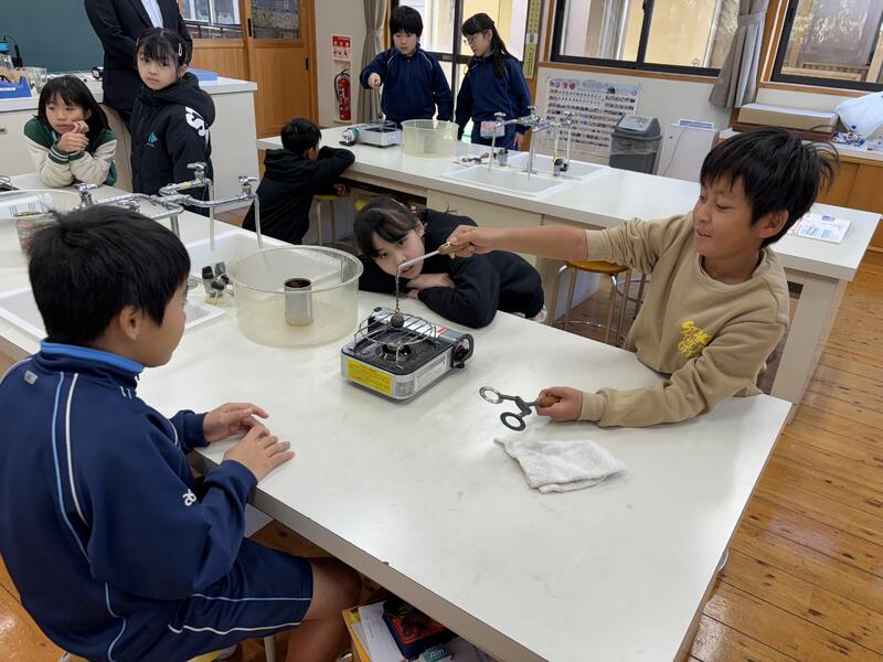 本日、ICT支援員であり、理科がご専門である橋本先生と一緒にものの体積変化の実験をしました。