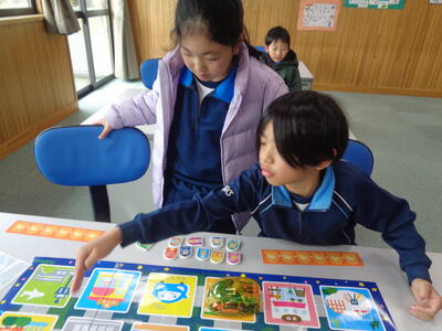 5年生は 紙相撲などそれぞれのグループでイベント(出店)を考えたお楽しみ会実施