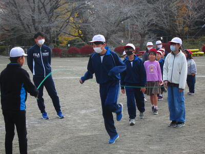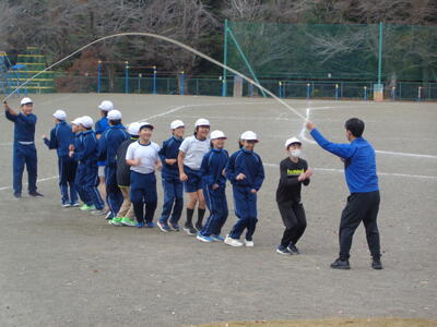 みんなで大縄跳びにチャレンジ!!声を掛け合ってしっかりとんでいました。