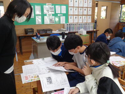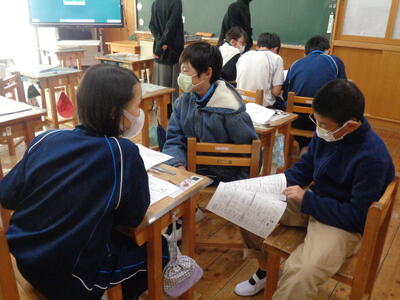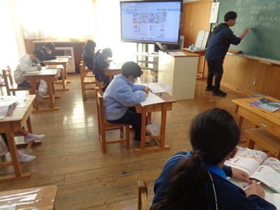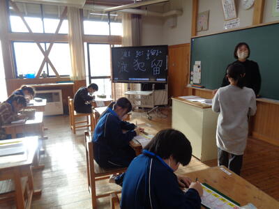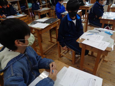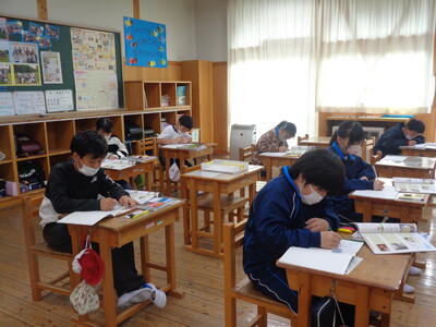 1年生は 学力テストに向けて学力向上推進リーダー、担任の先生と過去問題に取り組みました。