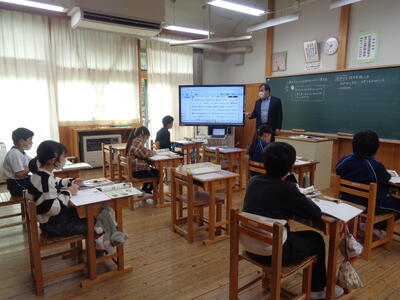 本日 総合的な時間の学習にて地域の無形文化財である「天祭」について、大畑先生より教えていただきました。