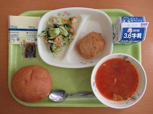 (丸パン、ぶた肉コロッケ、ソース、チーズ)