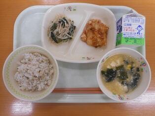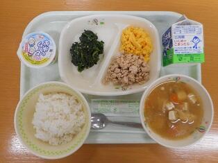 (とりそぼろ・たまごそぼろ・ほうれんそうのごまあえ)