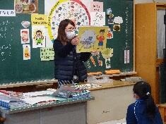 2月13日(月)1・2年生が、食について勉強しました。栄養教諭の平野先生に来ていただき、3時限目に1年生、4時限目に2年生が、人間の身体に必要な栄養について、給食の献立を例にして詳しく教えていただきました。また、食べるときに気を付けることなど紙芝居で教えていただきました。「苦手な野菜も少し食べてみる」など、子どもたち一人一人目標をもったようです。