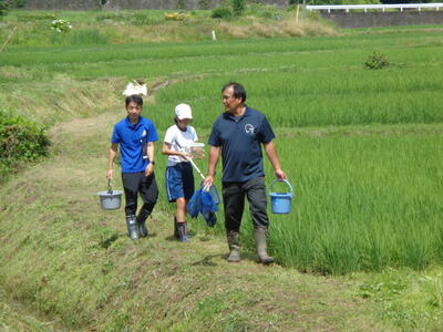 月曜日ですすっかりお天気で 5年生は羽仏地区へ総合の学習で「生き物調査」に行きました。