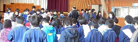 業間に卒業式で行う「別れのことば」を全校児童で練習しています。今日で3日目ですが、間の取り方も上手になってきました。