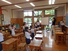 6月19日(金)、1・2年生が初めてALTの先生と授業をしました。英語の歌を体全体を使って歌ったり、自分の名前や好きなことを紹介しあったりしました。3・4年生になれば外国語活動、5・6年生になれば外国語の授業があります。今から外国語の学習の楽しさを感じてほしいと思います。