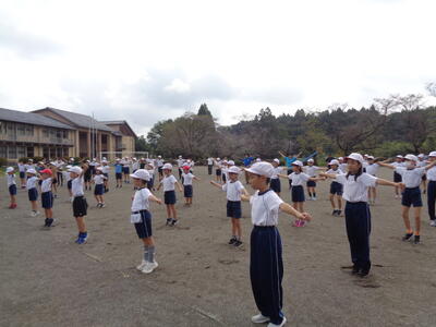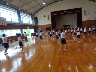 1~3年生は運動会のダンス練習、あっという間に覚えていて1曲踊れるようになりました音楽
