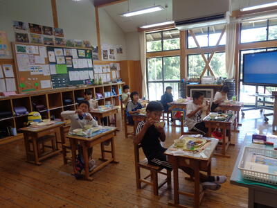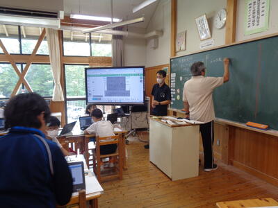 しっかりとまとめの学習カードに記入できました。わかりやすい授業となるように事前準備等、ありがとうございました。(適宜 換気しながらの授業 ありがとうございます。)橋本先生は本日、中学校のICT支援にも行きました。ICT機器やプログラミングも専門なので町内でも大活躍です。