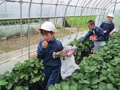 この日は1日中、イチゴの甘いにおいに包まれた小貝小でした。神野さんのご厚意に感謝いたします。