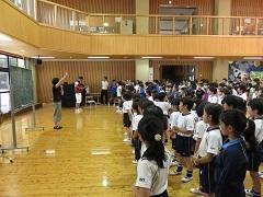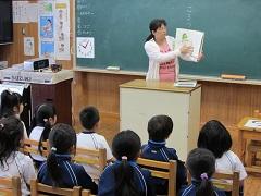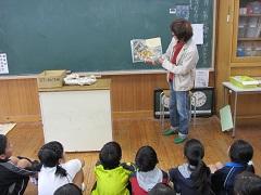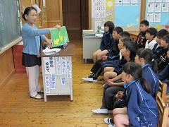 1年生は小松さんが「てがみをください」「ぴょんはかせのてんきそうだんじょ」「はやくねてよ」を、2年生は松尾さんが「ひゃっくん」「ともだちや」を、3年生は三武さんが「とらよりこわいほしがき」「うんちのちから」「なにをたべたかわかる?」を、4年生は樋口教諭が「裸の王様」を、5年生は皆川さんが「つりばしわたれ」「かっぱ」を、6年生は仲山さんが「オオカミから犬へ」「おじいちゃんのまち」を読んでくださいました。