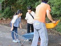 子どもたちも分担の仕事を一生懸命に取り組んでいました。校庭の除草・草刈り、枝の剪定、落ち葉は掃き、側溝掃除に加え、今回は運動会用のテントの準備やふれ合い広場のワックスがけもお願いしました。校外では通学路や運動会駐車場としてお借りした場所の草刈りもして頂きました。