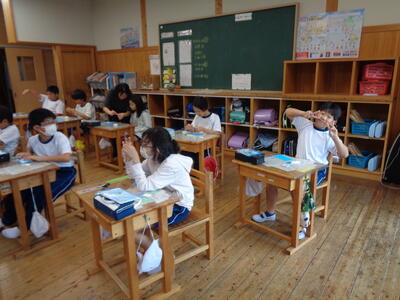 ↑5年生(授業になると真面目に・・)写真用の笑顔サービスありがとうです。
