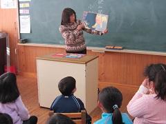 昨日の「ひまわり」の皆様に続いて、今日は「みなみかぜ」の皆さんの読みきかせでした。3年生が校外学習に出かけて不在であったり、欠席の方がいらしたため、4つの学年での実施でした。