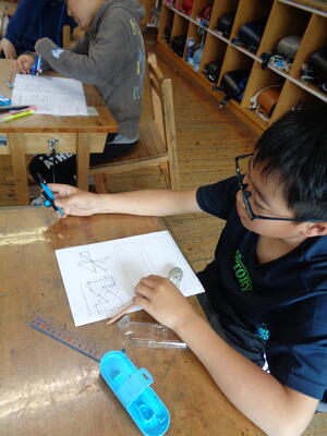 本日は6年教室におじゃましました。算数の学習で 対称な図形を描くポイントを学んでいました。