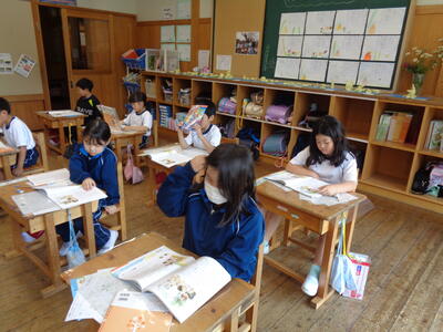 (2年生・道徳)真剣に資料文を読んでいます。