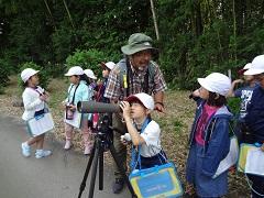 例年より少し遅くなりましたが、20種類前後の野鳥の姿や声を確認できました。鳥だけではなく動物や植物についても教えていただき、子どもたちは真剣に話しを聞いていました。