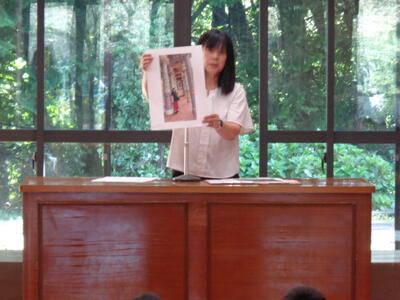 始業式後の学習指導主任からの話は進んで学習に取り組むことについて分かりやすく動画のテーマや図書資料を用いて説明しました。