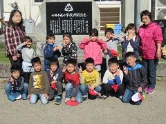 11月5日(火)、1年生が生活科の学習で、旧小貝中央小学校に秋を見つけに出かけました。紅や黄色の葉や、どんぐりやくり、まつぼっくりを見つけました。見つけた秋で、どんなものができるか楽しみです。