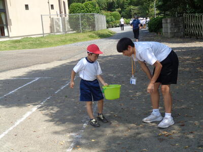 1・2・3年生は校庭の石拾いです。