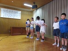 業間の時間に、健康給食委員の児童が、虫歯予防委集会を開きました。
