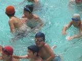 先週プール開きをしても入れなかったプールですが、今日は天気に恵まれ、どの学年も今年のプールでの初泳ぎを楽しみました。写真は2校時の5・6年生の様子です。