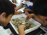 18日(火)は5年生が校外学習でなかがわ水遊園を訪れました。5年生は学年テーマ「レッツゴー環境探検隊」で地域の川を調べる学習をしていますが、この日は、なかがわ水遊園のおさかな研究室の講座「川にすむ生き物を調べよう」に参加し、川の汚れをみるための指標生物を採集し、なかがわ水遊園のせせらぎ川の水の汚れを調べました。実際に川に入り、いろいろな生物を採集し、その数などを調べ、川の環境を調べる方法を学習しました。子どもたちは、たくさんの生き物がいることに夢中になって採集したり、調べたりしていました。市貝町ではなかなか見られない「プラナリア」も発見し、お土産にいただいてきました。