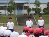 10日(月)の業間時には、プール開きを行いました。天候もよく、今すぐにでも泳ぎたくなるような天気でしたが、校長先生や係の先生のお話、代表児童の話をしっかり聞いていました。もうすぐ始まる水泳の学習を楽しみにしていました。でも、台風の接近が心配され、水泳の学習もしばらくはおあずけになりそうです。