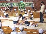 本日の業間は、体育集会で「鬼ごっこ」を全校児童で行いました。後半は、1年生全員が鬼(赤帽子)になって次々に白帽子を赤帽子に変えていき、ついには全員が鬼となりました。楽しみながら汗をたくさんかきました。