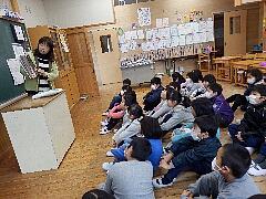 お話の会に続いて、3月5日から2年担任の永山友理恵教諭が産前産後休暇に入るため、全校児童に、しばし別れのあいさつがありました。児童・職員全員で、元気な赤ちゃんが無事に生まれてきてくれることを願いました。その後、後任に2年生担任となる、髙山成美学習指導助手(3月5日からは教諭)からも、あいさつがありました。3月いっぱいですが、よろしくお願いいたします。