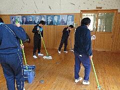 体育館のアリーナや特別教室をきれいに水拭きして、ワックスを塗ってくれました。心を込めてがんばってくれたお陰で、床はぴっかぴかになりました。