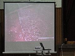 今回は「雨だれ石をもうがつ」という話をしました。雨だれが硬い石にあけた穴の写真をもとに、小さな雨だれでも、長い時間をかければ硬い石でも穴を開けることができる。簡単なことでも、続けることで大きな成功につながるという話をしました。低学年の児童には少し難しかったかも知れませんが、一生懸命に聞いてくれました。