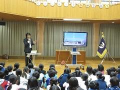 ゲストとして今年は初代PTA会長の髙梨勝昭さんをお招きしました。小貝地区の移り変わりや小貝南小の様子、そして、小貝小ができたときのエピソード等を画像を交え話してくださいました。児童も教職員も真剣に聞いていました。児童の感想発表ではたくさんの手が上がり、4名がしっかりした態度で感想を述べ、大きな拍手が湧きました。