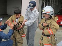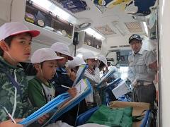 社会科の授業で消防市貝分署を見学しました。消防署で働く皆さんの仕事について、説明してもらいました。子どもたちはメモをとりながら、真剣に聞いていました。消防服を着せてもらったり、救急車の中で説明を聞いたりと、普段できない体験をしてきました。消防の仕事が身近に感じられるようになりました。