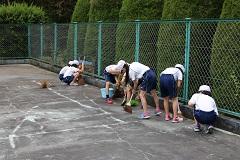 4~6年生はプールサイドと水を抜いたプール床や壁をブラシできれいにしてくれました。気持ちよく水泳の授業ができそうです。道徳教育との関連は「勤労、公共の精神」を意識しました。
