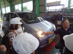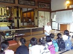 毎年お世話になっている田村自動車さんでは、普段見られない自動車の下の部分を見せていただいたりしました。次にお邪魔したのは梅寿接骨院と光賢寺でした。お寺の歴史や、接骨院のお仕事について説明していただきました。