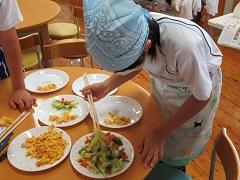 6月3日、6年生が家庭科の調理実習を行いました。朝食メニューを作ろうということで卵焼きと野菜炒めを作りました。手慣れた様子で卵焼きを作る児童や、不安な様子で材料を切る児童と様々でしたがおいしくできました。