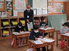 2月1日(火)15:10~ランチルームで、入学のための保護者説明会を行いました。本来であれば、一日入学ということで、新しく入学する子どもたちも学校に来て、現在の1年生と交流する予定でした。しかし、コロナ感染症の拡大のため、残念ながら保護者説明会だけ行うこととしました。入学までの準備についてや学用品購入、学童保育についての説明などを行いました。帰るとき、新1年生へのプレゼントということで、在校生からのメッセージカードやあさがおの種などを入れた袋を渡しました。