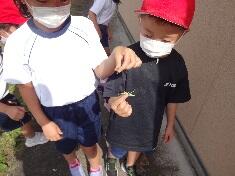 10月4日(火)5時限目に1年生が、生活科で生き物探しを行いました。校庭の周りには、どんな生き物がいるのか、みんなで捕まえて観察しました。バッタやカエル、トンボやトカゲなど、夢中になってたくさん生き物を見つけることができました。次回は、見つけた生き物を図鑑で調べる予定です。