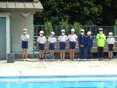 6月1日(木)プール開きを行いました。体育委員会の児童が中心となって、プール開きの運営を行いました。代表児童から、目標をもって水泳を頑張り、安全に泳ぎたいということを全校児童に伝えました。模範となる泳ぎを代表児童が行う予定でしたが、残念ながら水温が低かったので、泳ぐことは、できませんでした。今後、暑い日が続くと、プールに入る日が多くなってくると思います。子どもたちが安全に楽しく活動できるようにしていきたいと思います。