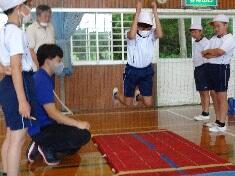 6月5日(月)1~2時限目に全校児童を対象として、新体力テストを行いました。高学年児童が記録や種目の補助等のお手伝いをしながら、50m走、ソフトボール投げ、立ち幅跳び、上体起こし、長座体前屈、反復横とびの種目を行いました。1回目よりも2回目に自分の記録を更新する児童が多く、全力を出し切って頑張りました。