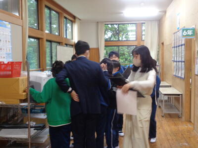 あいにくの雨の金曜日ですが小貝っ子は今日も元気に登校(6年生はさすがに眠そう・・・