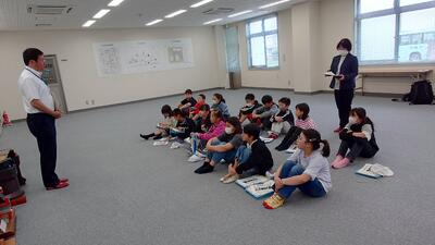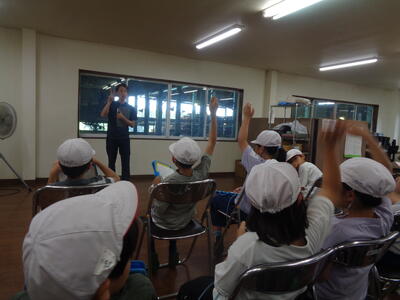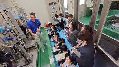 はじめに、浄水場の仕事やきれいな水が届くまでの流れについて、わかりやすく説明していただきました。