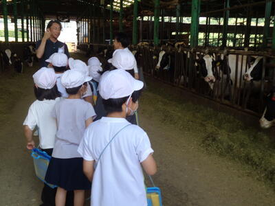 牧場の様子や牛のお世話の様子を実際に見学し、JETファームの自慢できるところや仕事での工夫等について聞いたり質問しました。