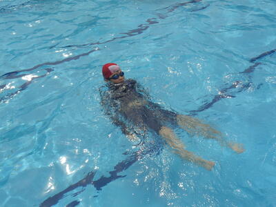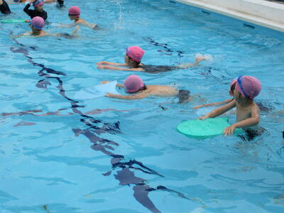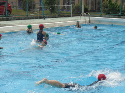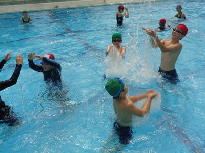 先生と一緒にプール