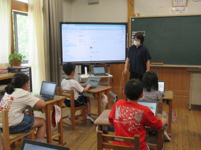 5年生は臨海自然教室の思い出発表とスライドで思い出の写真鑑賞会