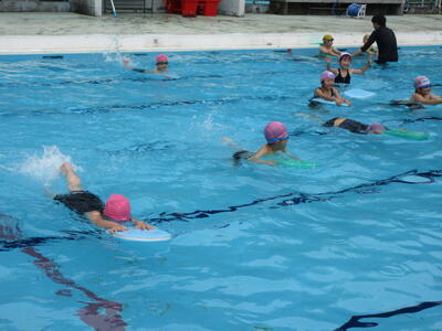 先生の話をよく聞いて、みんな楽しそうに泳いでいました。