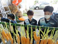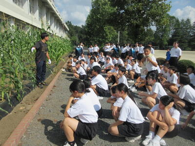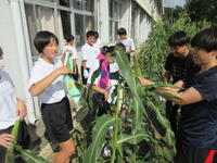 16日(火)5,6校時に収穫が行われました。普通に食べるとうもろこしの収穫です。楽しそうに収穫をしていました。