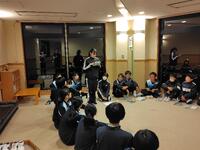 班長と室長が集まり、今日の活動の反省と振り返りをしている様子です。